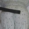 Lilac has been messing about in bed. She is strapped over her blue pyjamas and then on the bare.